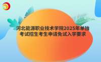 本網(wǎng)站詳細(xì)介紹河北能源職業(yè)技術(shù)學(xué)院2025年單獨(dú)考試招生考生申請(qǐng)免試入學(xué)的要求。根據(jù)河北省教育廳規(guī)定,符合條件的考生可申請(qǐng)免試錄取。具體要求如下: