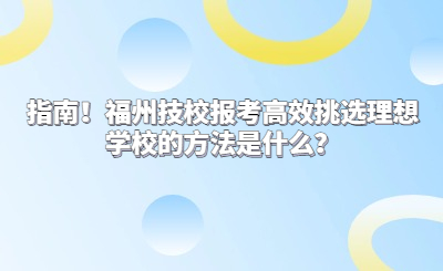 指南!福州技校報考高效挑選理想學校的方法是什么?