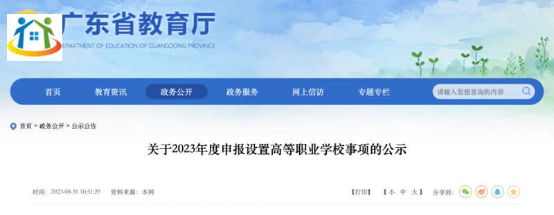 關(guān)于2023年度申報設(shè)置高等職業(yè)學(xué)校事項的公示