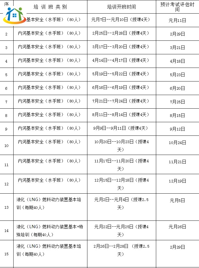 2024年內(nèi)河船舶船員培訓(xùn)開班計劃(內(nèi)河基本安全部分)
