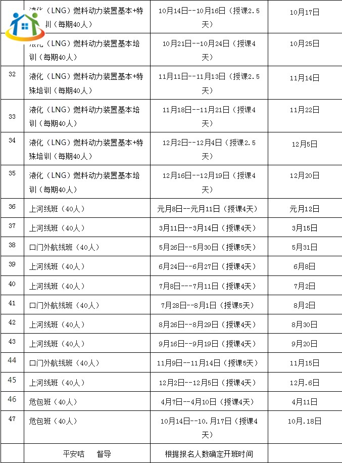 2024年內(nèi)河船舶船員培訓(xùn)開班計劃(駕駛部分)