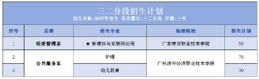 2.高職學段招生對象為對應中職學校招生專業(yè)”三二分段”班具有正式中職學籍且符合高職階段招生所在年度廣東省普通高考報名條件的學生。