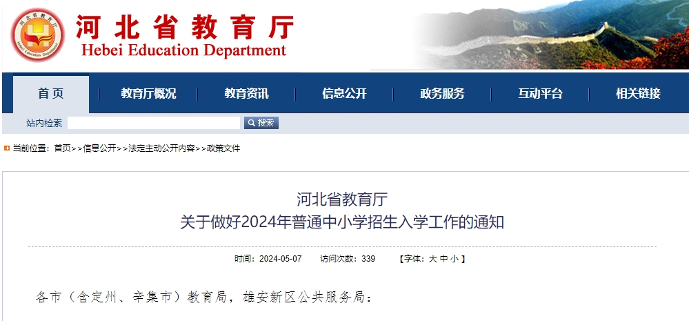 河北省教育廳關于做好2024年普通中小學招生入學工作的通知