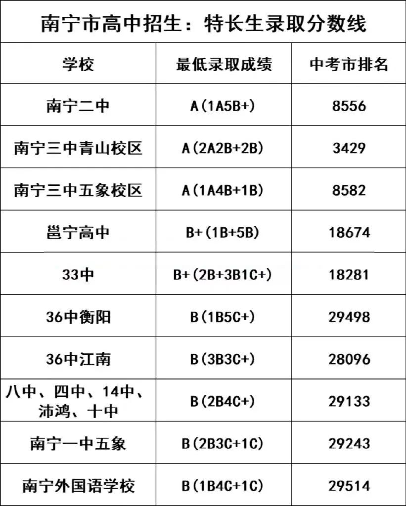 特長生錄取!南寧市高中招生(24年參考)