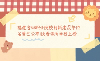 福建省級職業(yè)院校創(chuàng)新建設(shè)單位名單已公布!快看哪所學校上榜