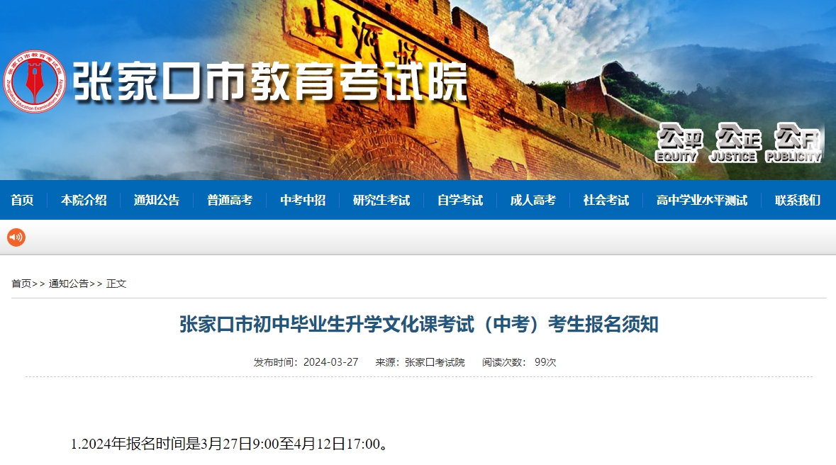 張家口市初中畢業(yè)生升學(xué)文化課考試(中考)考生報(bào)名正在進(jìn)行中,一起來了解一下相關(guān)的報(bào)名須知以及政策解讀吧!