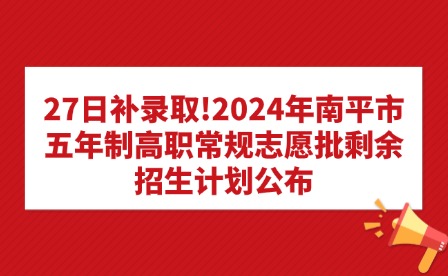 27日補(bǔ)錄取!2024年南平市五年制高職常規(guī)志愿批剩余招生計(jì)劃公布