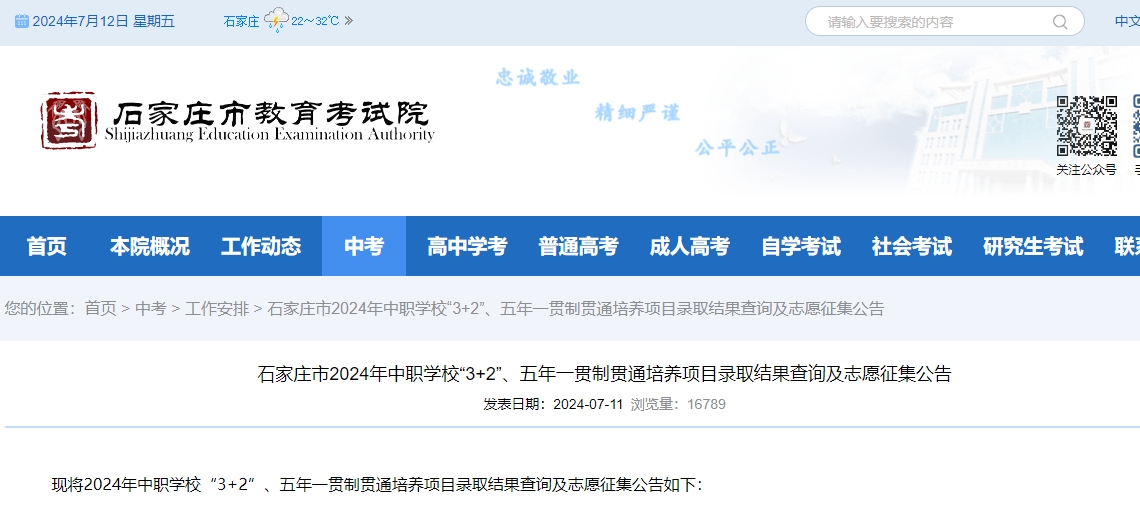 2024石家莊中考錄取結(jié)果什么時(shí)候公布?