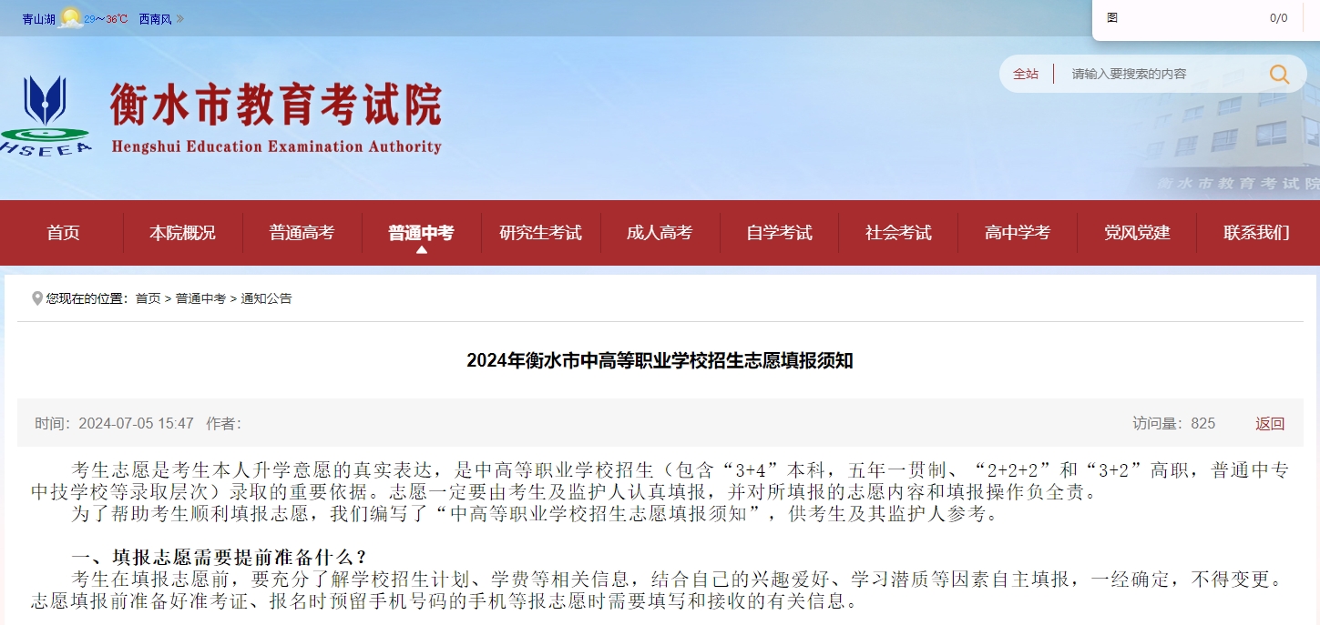 速看!2024年衡水市中高等職業(yè)學(xué)校招生志愿填報須知