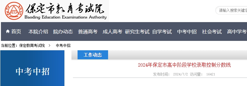 2024年保定市高中階段學(xué)校錄取分?jǐn)?shù)線