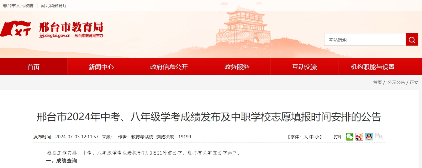 根據(jù)工作安排,中考、八年級(jí)學(xué)考成績(jī)擬于7月3日21時(shí)前公布,現(xiàn)將有關(guān)事宜公布如下:一、成績(jī)查詢我市2024年中考、八年級(jí)學(xué)考成績(jī),擬于7月3