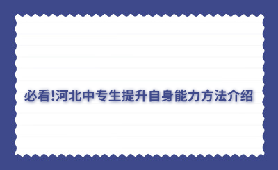 很多中職生對自己的前途感到迷茫,導(dǎo)致上學(xué)時(shí)不知如何是好,那么河北初中升學(xué)網(wǎng)為你帶來必看!河北中專生提升自身能力方法介紹,希望給你帶