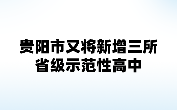 重點(diǎn)關(guān)注!貴陽市又將新增三所省級示范性高中