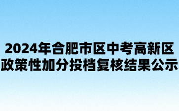 新公布!2024年合肥市區(qū)中考高新區(qū)政策性加分投檔復核結(jié)果公示