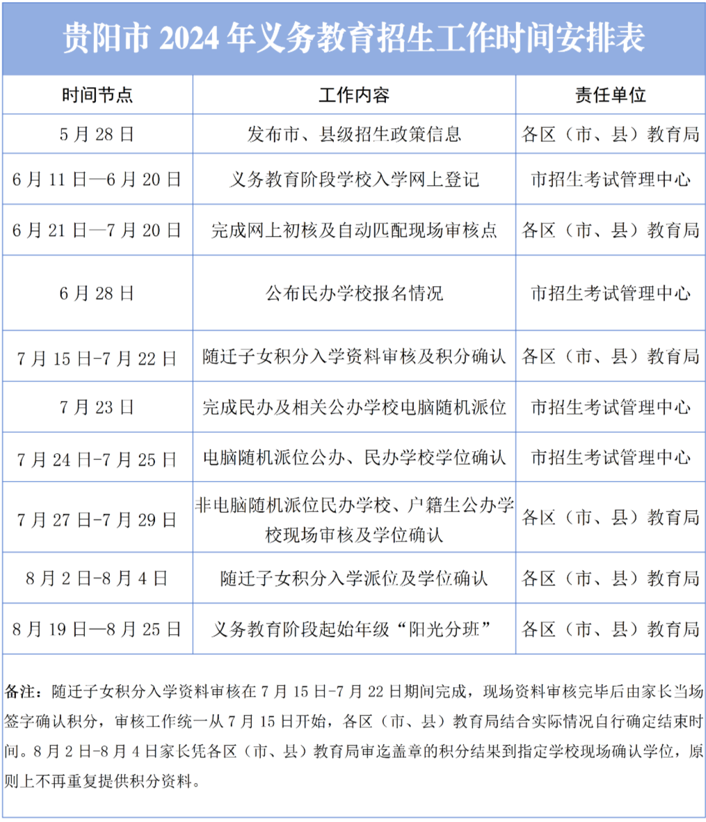 一文了解2024貴陽(yáng)市義務(wù)教育招生工作時(shí)間安排表