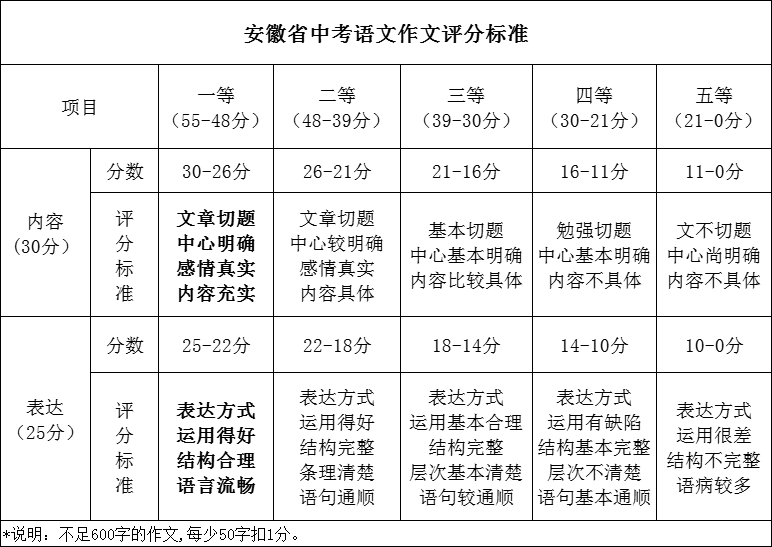 關(guān)注!安徽省中考語(yǔ)文作文評(píng)分標(biāo)準(zhǔn)