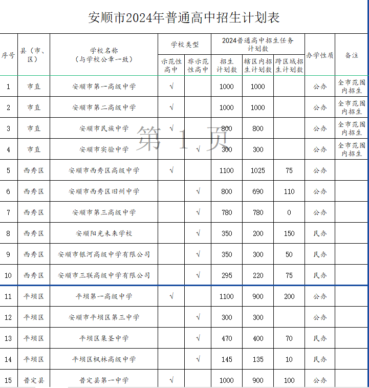 升學(xué)了解!安順市2024年普通高中招生計劃表