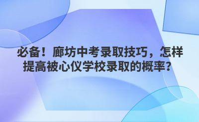必備!廊坊中考錄取技巧,怎樣提高被心儀學(xué)校錄取的概率?