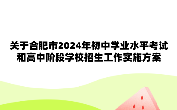 關(guān)于合肥市2024年初中學(xué)業(yè)水平考試和高中階段學(xué)校招生工作實施方案