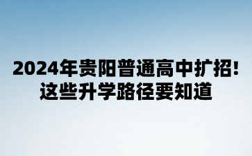 2024年貴陽普通高中擴招!這些升學路徑要知道