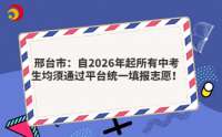 邢臺(tái)市:自2026年起所有中考生均須通過(guò)平臺(tái)統(tǒng)一填報(bào)志愿!