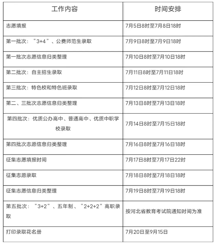 2024年張家口市高中階段學校志愿填報及錄取時間