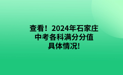 查看!2024年石家莊中考各科滿分分值具體情況!
