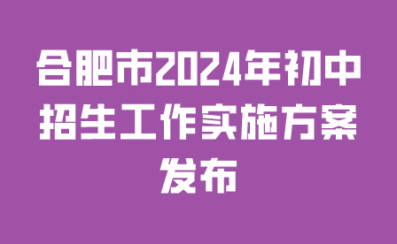 合肥市2024年初中學(xué)業(yè)水平考試和高中階段學(xué)校招生工作實施方案發(fā)布