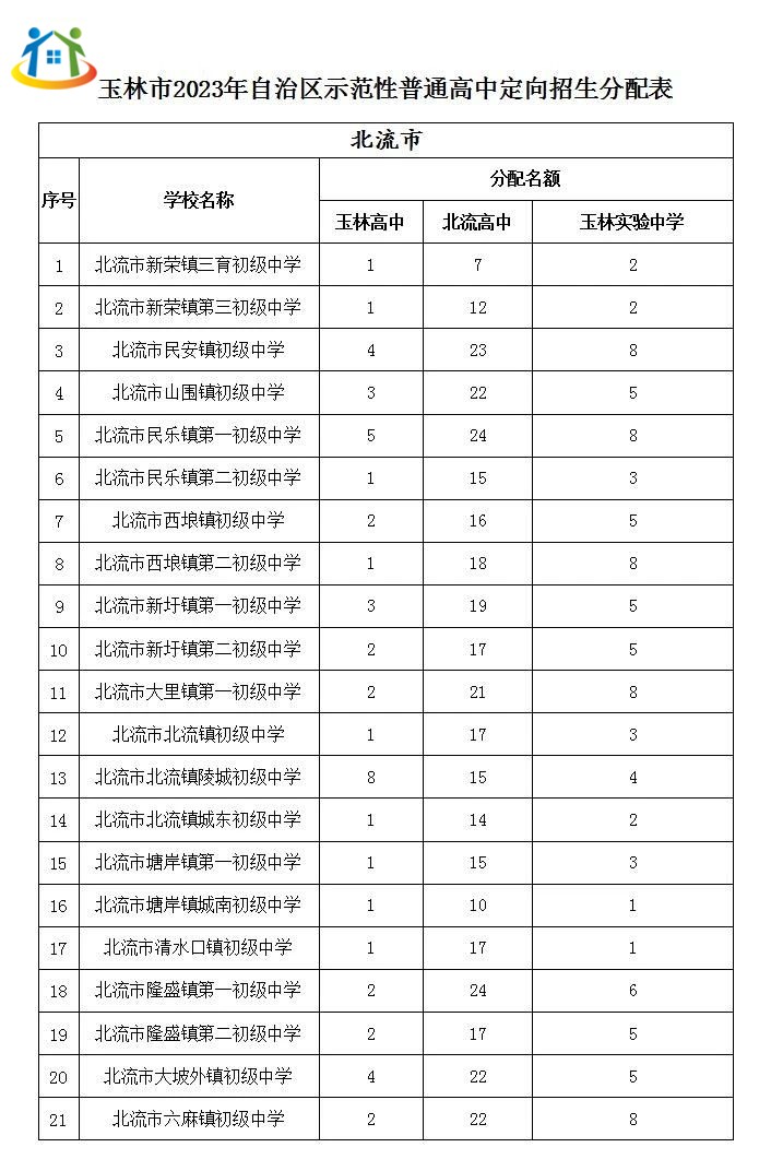 本文標題:公布!北流市2023年示范性普通高中招生分配計劃表