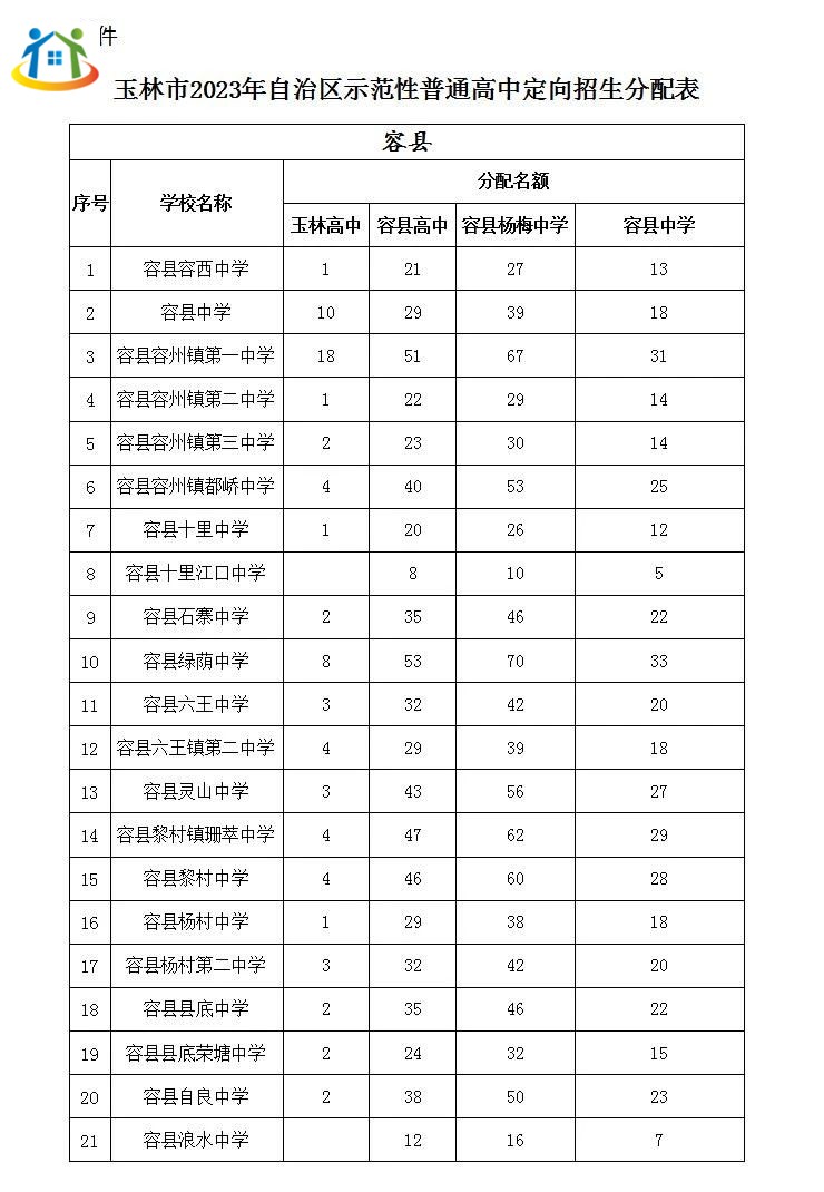 本文標(biāo)題:公布!容縣2023年示范性普通高中招生分配名額表