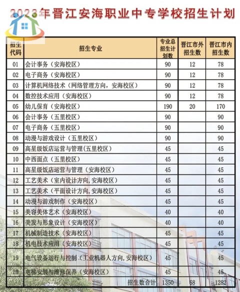 晉江安海職業(yè)中專學(xué)校是福建省重點職業(yè)中專學(xué)校、福建省中等職業(yè)教育改革發(fā)展示范學(xué)校、福建省示范性現(xiàn)代中等職業(yè)學(xué)校、全國首批職業(yè)院校數(shù)字校園建設(shè)實驗校。2020-2023年本科上線總?cè)藬?shù)667人!是2021年“職教高考"3狀元福地!本科上線人數(shù)以及本科上線率均位居福建省前列!