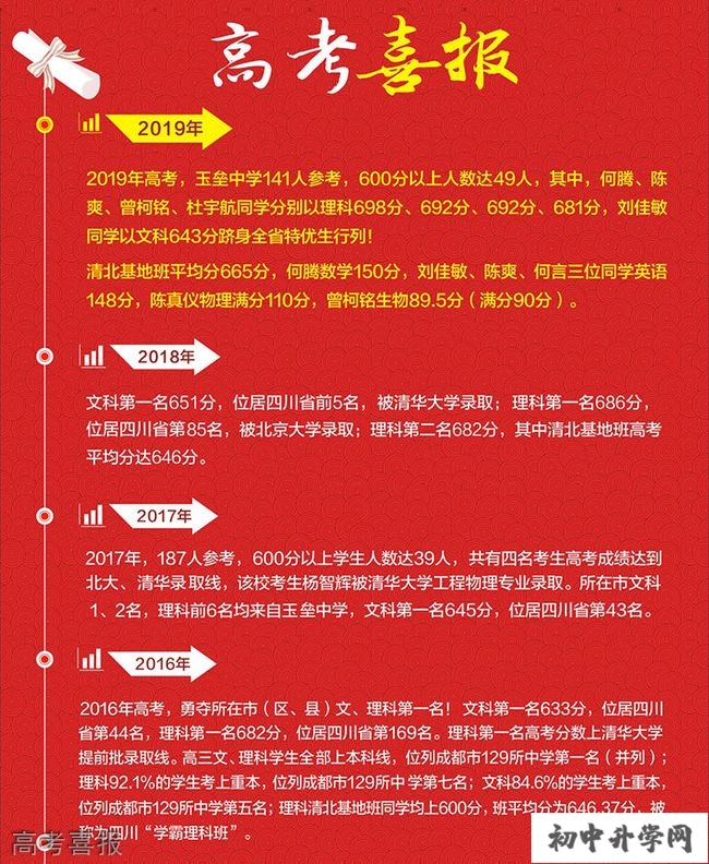 2021年成都玉壘中學(xué)初中高考喜報、600分以上人數(shù)達(dá)49人那么,想了解2021年成都玉壘中學(xué)初中高考喜報、600分以上人數(shù)達(dá)49人以下內(nèi)