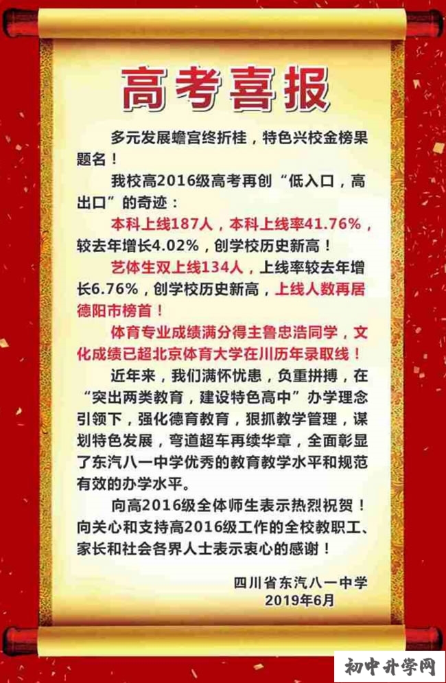 2021年四川省東汽八一中學(xué)初中高考喜報(bào)、本科上線率41.76%那么,想了解2021年四川省東汽八一中學(xué)初中高考喜報(bào)、本科上線率41.76%