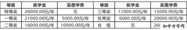 各等級獎(jiǎng)學(xué)金及收費(fèi)標(biāo)準(zhǔn)如下: