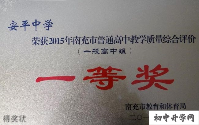 南充市安平中學(xué)建校以來在老師和學(xué)生的共同努力下,取得一個又一個驚人佳績,獲得過“南充市文明單位”、“南充市衛(wèi)生先進(jìn)單位”、“南充市教育科研先進(jìn)單位”,連續(xù)十年勇奪“南充市高中辦學(xué)水平一等獎”,連續(xù)十年續(xù)寫純應(yīng)屆生上重點本科線的教育神話。