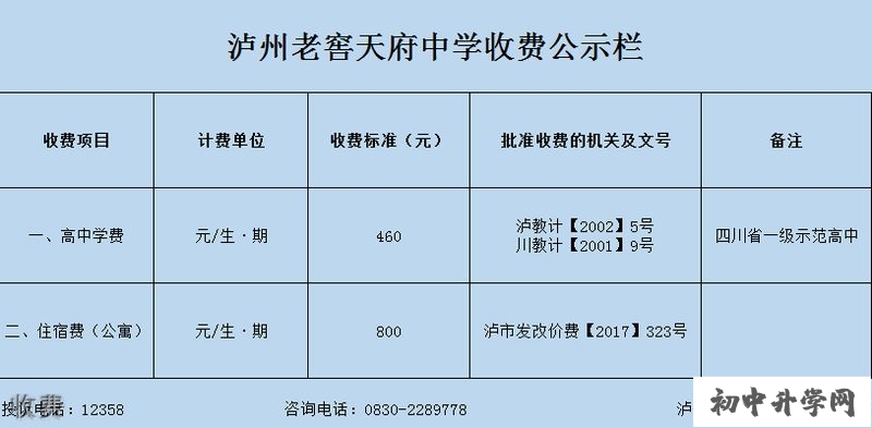 瀘州老窖天府中學(xué)(瀘州二中)收費(fèi)