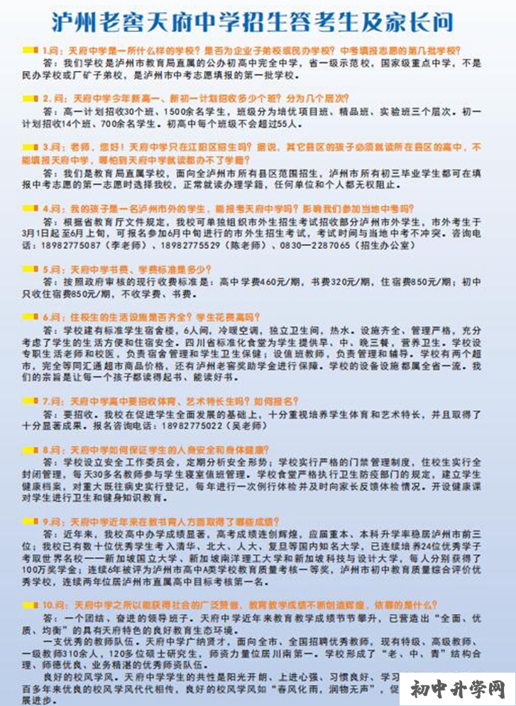 瀘州老窖天府中學(xué)答疑:瀘州老窖天府中學(xué)(瀘州二中)答疑