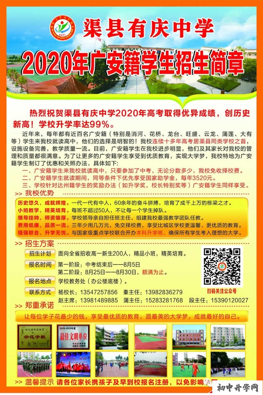 2021年渠縣有慶中學(xué)初中招生計劃(招收廣安學(xué)生)親愛的廣安籍同學(xué):那么,想了解2021年渠縣有慶中學(xué)初中招生計劃(招收廣安學(xué)生)以
