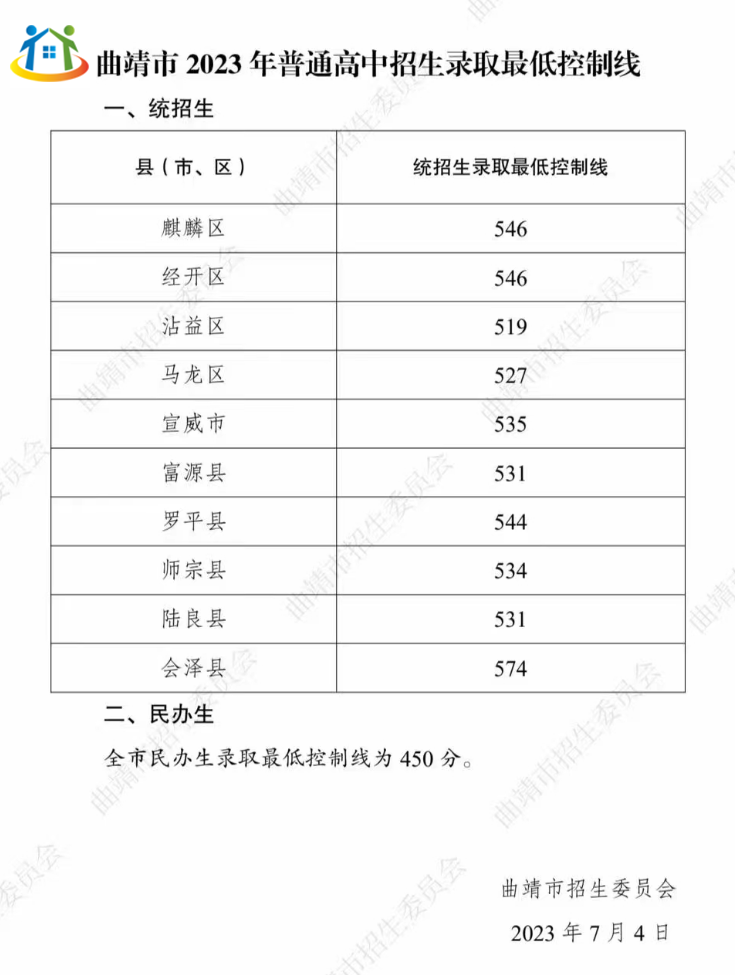 本文標題:曲靖市2023年普通高中招生錄取最低控制線