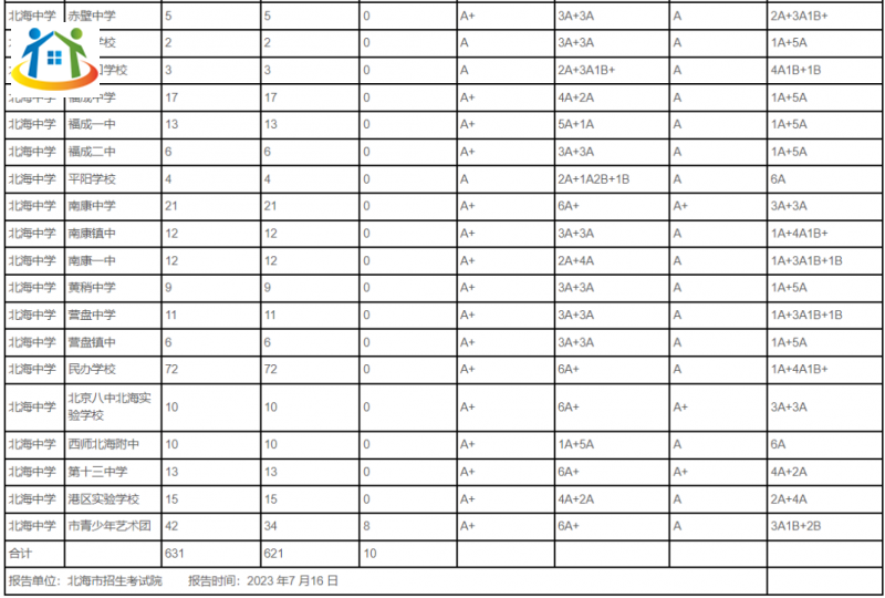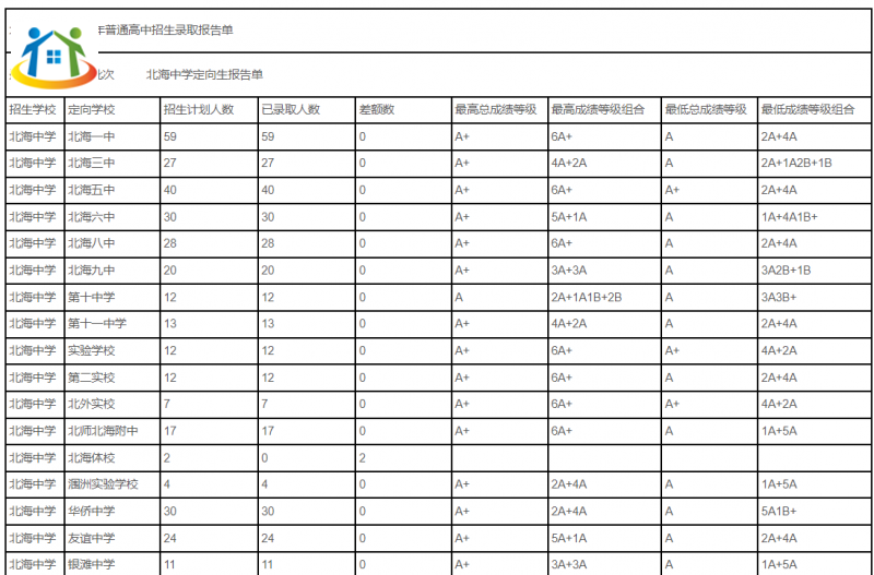 北海市轄區(qū)2023年普通高中招生錄取報(bào)告單