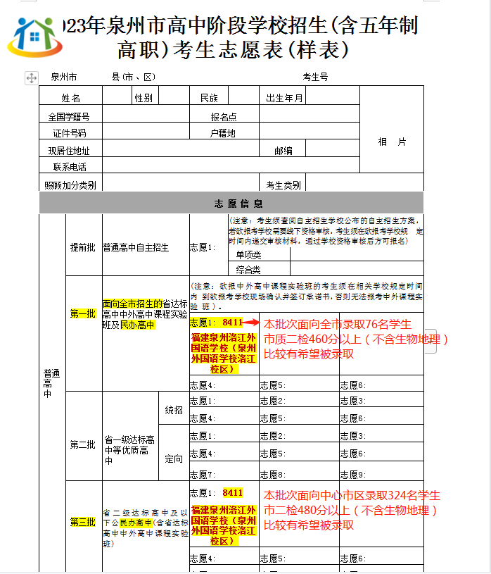 5.如果填報第二批省一級達標高中等優(yōu)質高中且被錄取,就無法參加第三批福建泉州洛江外國語學校的錄取。