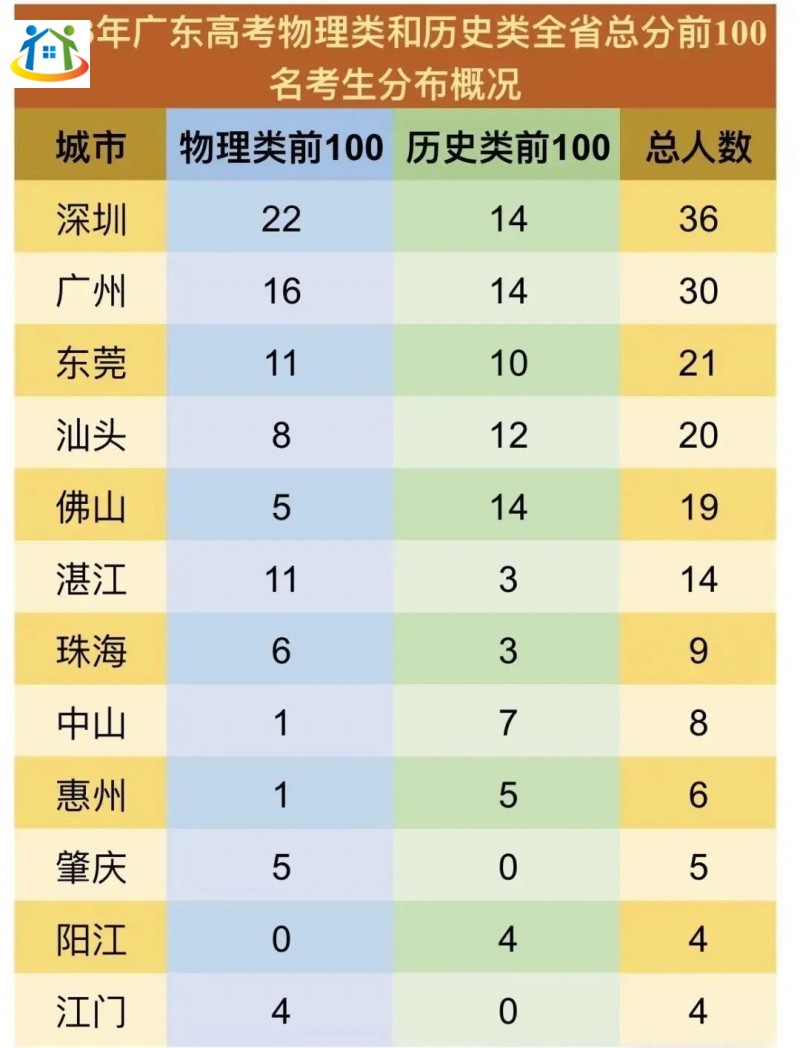 2023廣東高考前100名分布城市