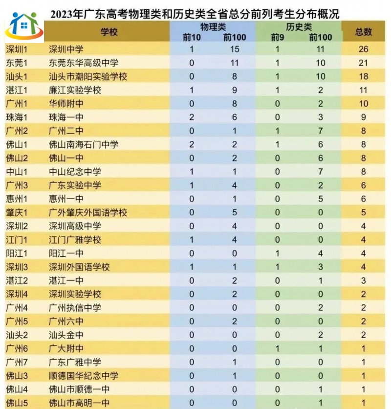 2024年廣東高考前100名都在哪些高中?