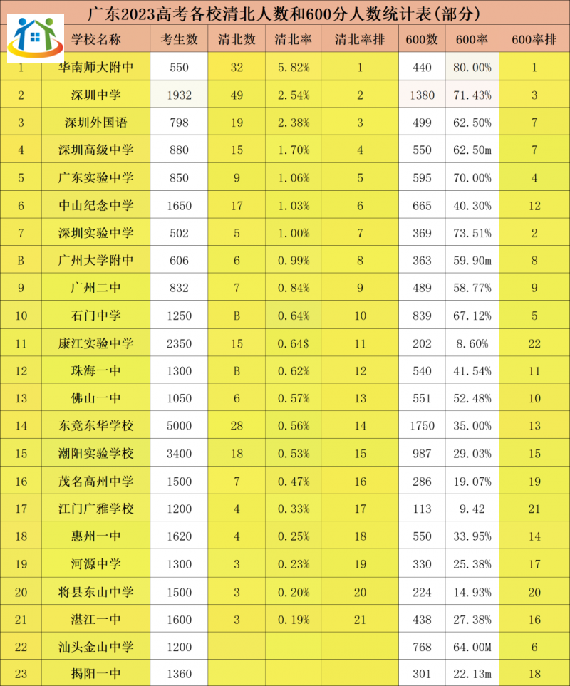 2023廣東高考前100名分布高中