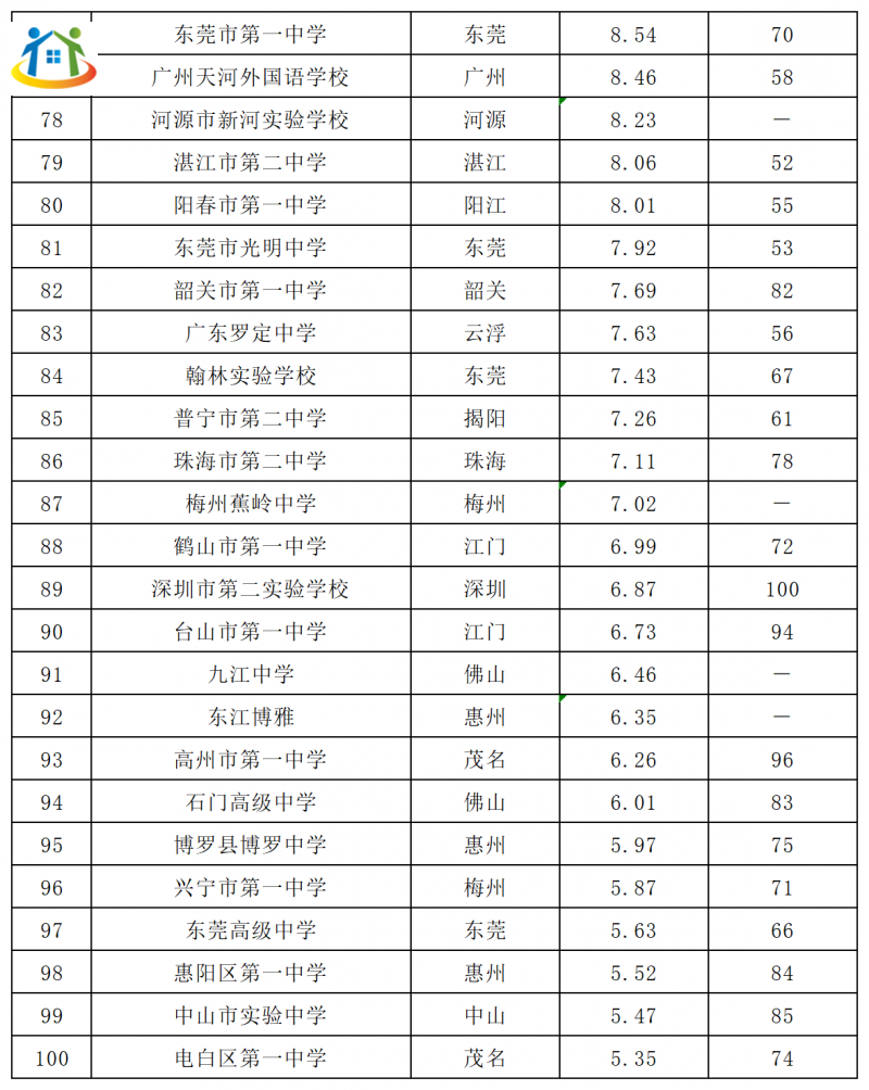 2024年廣東高中100強(qiáng)排名榜