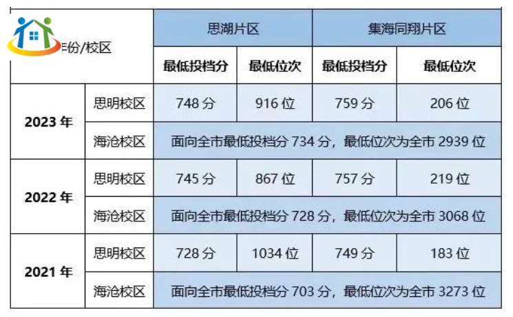 思明校區(qū):思湖片區(qū)平均最低投檔分為740分,平均最低位次為939位;集海同翔片區(qū)平均最低投檔分為755分,平均最低位次為202位