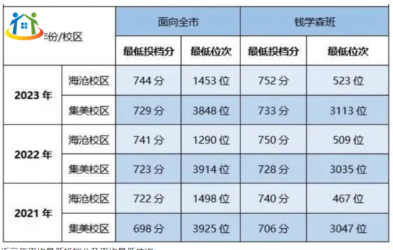 集美校區(qū):面向全市平均最低投檔分為716分,平均最低位次為3895位;錢學森班平均最低投檔分為722分,平均最低位次為3065位