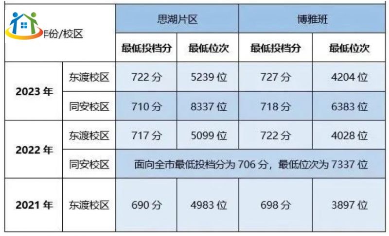 東渡校區(qū):思湖片區(qū)平均最低投檔分為709分,平均最低位次為5107位;博雅班平均最低投檔分為715分,平均最低位次為4043位