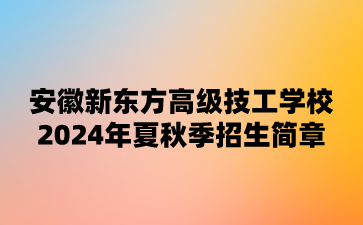 全日制院校!安徽新東方高級(jí)技工學(xué)校2024年夏秋季招生簡(jiǎn)章