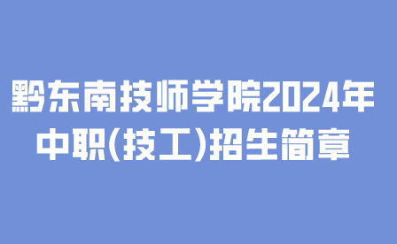 速看!黔東南技師學(xué)院2024年中職(技工)招生簡(jiǎn)章